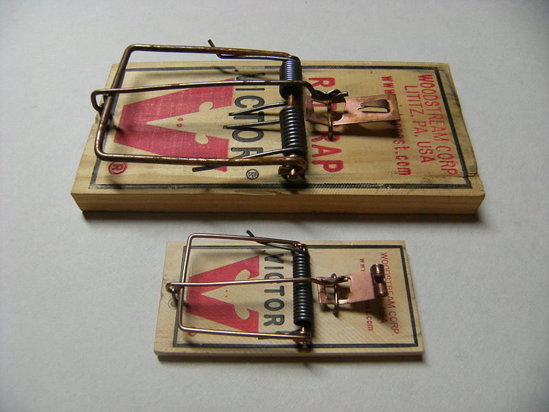 Step two is get traps. Lots of traps, more really is better in this instance. They make fancy electrical traps, but they're expensive. I can get a lot of snap traps for what one of those cost. Live traps are stupid. You know those rats they teach to run mazes? Rats are smart enough to avoid the trap once they've been caught in it, and that doesn't mean they've moved out. Live traps are also stupid because rats are MEAN. You've heard the expression about fighting "like a cornered rat"? There's a reason for that. Rats are also smart enough to learn from the mistakes of others, so get lots of snap traps and move them around once they've caught something.